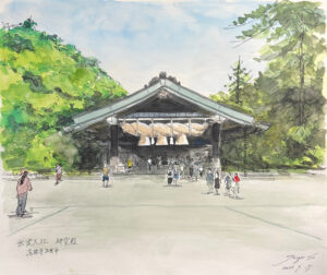 島根県出雲市「出雲大社 神楽殿」 F8 (水彩+水性ペン)2025.9.15